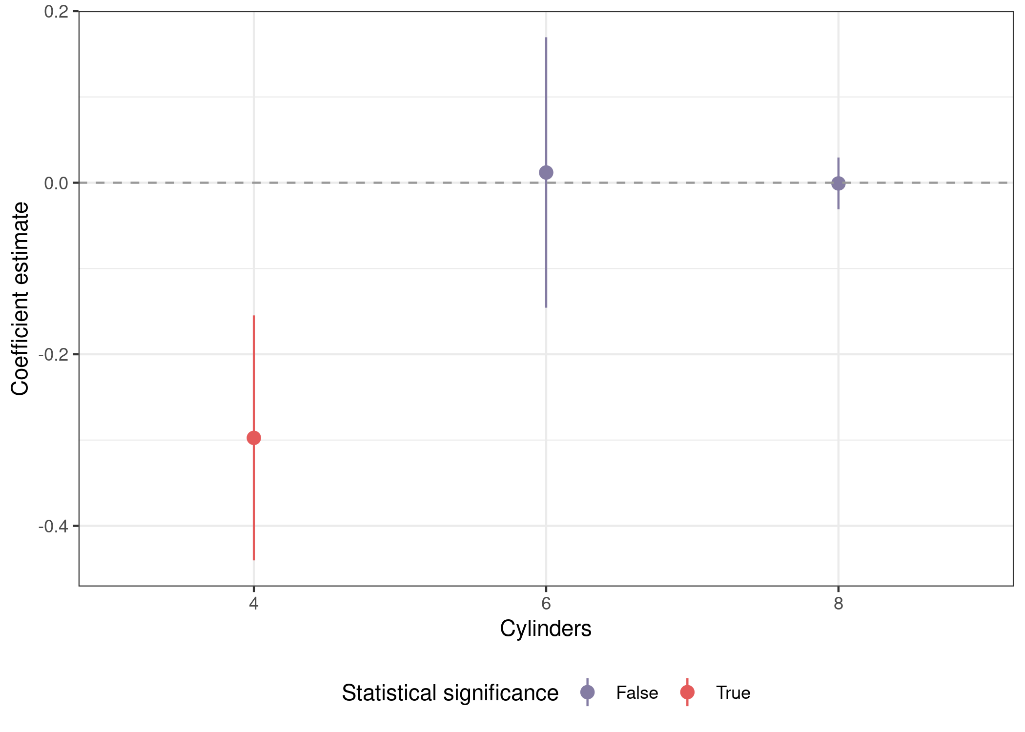 labs(x = 'Cylinders', y = "Coefficient estimate") +